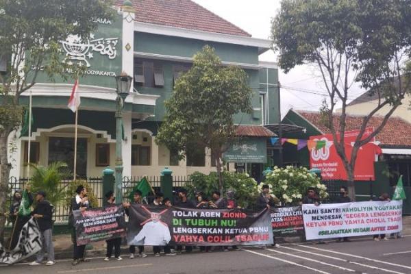 Unjuk rasa, yang dimulai sekitar pukul 14:15 WIB itu dilatari oleh keresahan santri-santri NU Yogyakarta atas kebijakan memalukan Ketua Umum PBNU, Gus Yahya yang memberi panggung kepada tokoh akademis dan praktisi global pro zionis Israel dalam pengkaderan di PBNU. Bagi para santri pengunjuk rasa, NU sebagai organisasinya para Ulama mulia nan suci, dikotori oleh agen zionis yang pikirannya menghalalkan penjajahan, penindasan dan pembantaian warga Palestina.