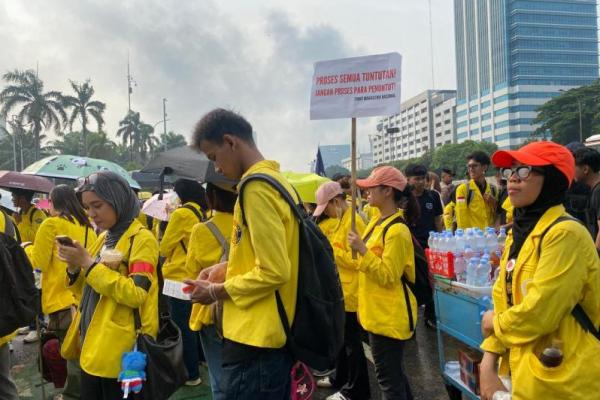 Dengan atribut bendera, poster tuntutan, dan beralmamater yang didominasi warna kuning dan biru, mahasiswa datang dengan membawa berbagai tuntutan, khususnya mengenai progres 17+8 Tuntutan Rakyat.