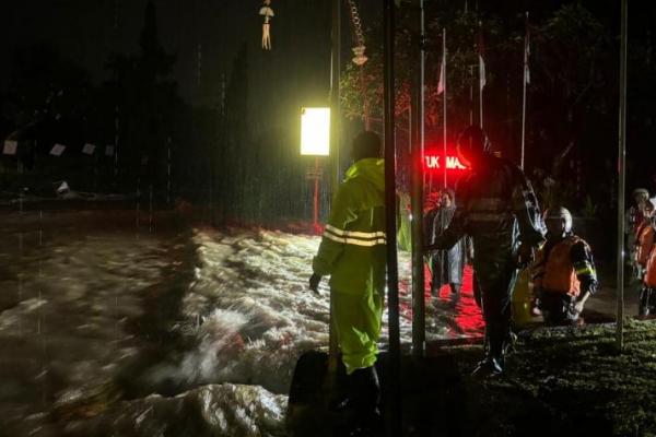 Jajaran Polda Bali saat memantau arus banjir untuk mencari para korban. (Foto: Jurnas/Ist).