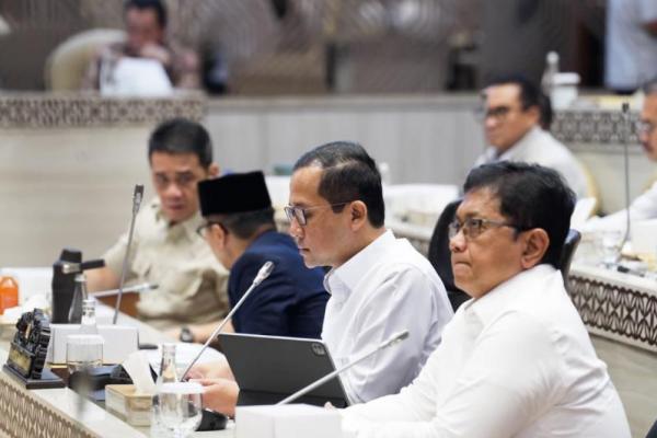 Wakil Menteri Transmigrasi (Wamentrans) Viva Yoga Mauladi menghadiri rapat kerja yang digelar Komisi V DPR RI, di ruang rapat Komisi V DPR RI, Senayan, Selasa, Jakarta, pada Selasa (Foto: Ist/Kementrans)