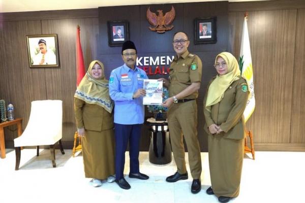 Menteri Sosial (Mensos) Saifullah Yusuf atau Gus Ipul audiensi dengan Wali Kota Sukabumi Ayep Zaki dan Bupati Rokan Hilir Bistamam di Kantor Kemensos, Jakarta, Senin (Foto: Kemensos)
