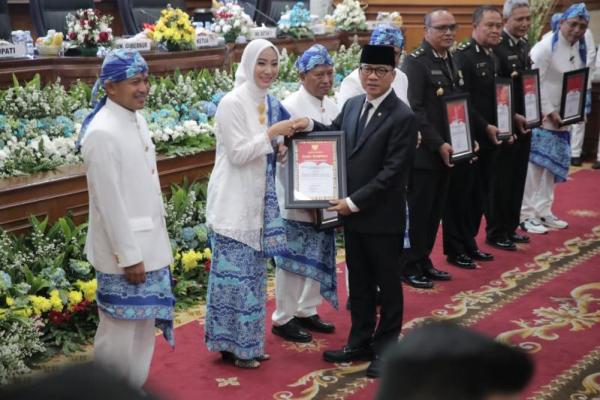 Rapat Paripurna itu beragendakan peringatan Hari Ulang Tahun (HUT) ke-499 kabupaten yang dipimpin oleh Ratu Rachmatu Zakiyah ini. Mendes Yandri mengucapkan Selamat kepada Kabupaten yang telah berdiri sejak tahun 1526 tersebut.
