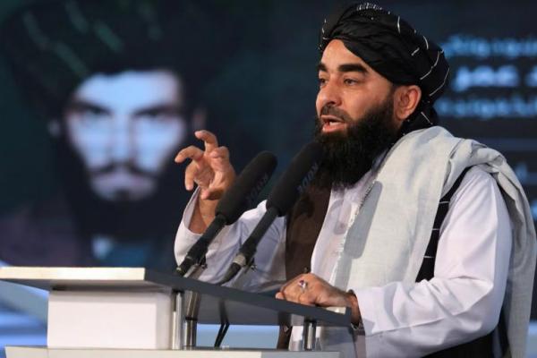 Wakil Menteri Informasi dan Kebudayaan sekaligus juru bicara Taliban Afghanistan, Zabihullah Mujahid, berpidato di Kabul, Afghanistan, 24 April 2022. REUTERS