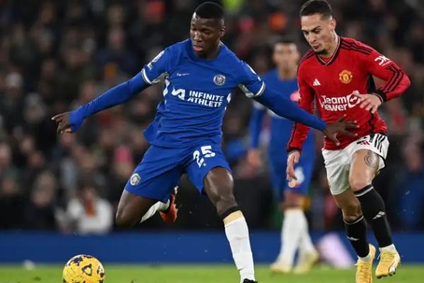 Gelandang Chelsea, Moises Caicedo dikawal mantan pemain MU, Antony (Foto: Goal)