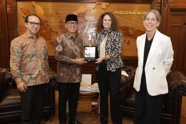 Mendes PDT Yandri Susanto pada Kamis (21/11) menerima kunjungan delegasi Bank Dunia yang dipimpin Direktur Regional Planet World Bank untuk Asia Pasifik Timur Anna Wellenstein di Kantor Kemendes PDTT, Jakarta (Foto: Humas Kemendes PDT)