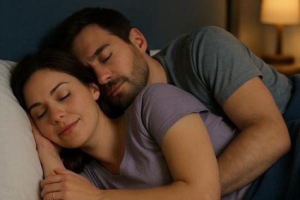 Ilustrasi suami istri tidur berpelukan sebagai bentuk keharmonisan (Foto: Doknet)