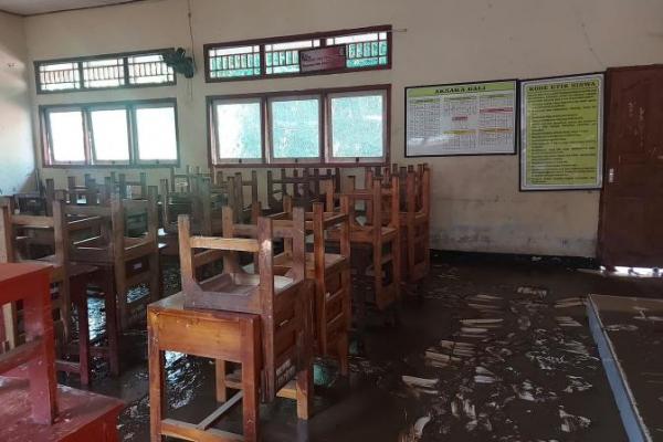 "Dan terlihat lumpur yang menggenangi lantai sekolah dan menjadikan beberapa perangkat pembelajaran, di antaranya buku yang terendam banjir, kemudian juga perangkat elektronik seperti personal komputer yang juga ikut terendam banjir," kata Yusro pada Senin (15/12).