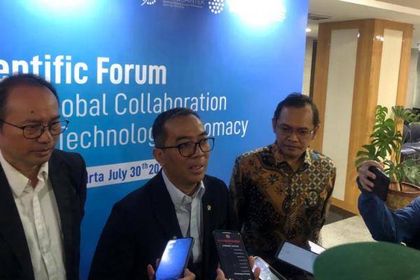 Mendiktisaintek Brian Yuliarto dalam konferensi pers usai kegiatan Strengthening Global Collaboration Trough Science and Technology Diplomacy di Gedung Kemdiktisaintek (Foto: Habib/jurnas.news)