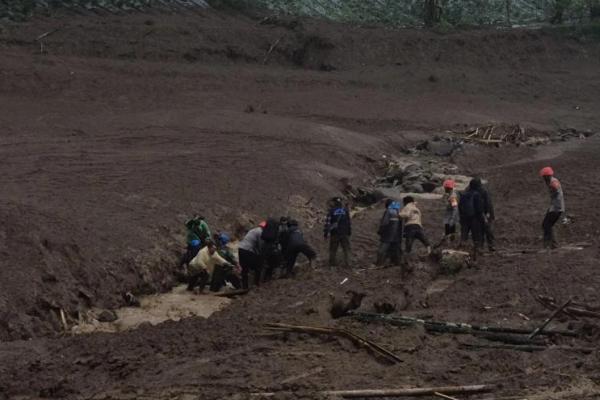 “Alat berat belum sepenuhnya bisa digunakan karena kondisi medan masih berupa longsoran bubur pasir dan sangat rawan,” jelasnya.