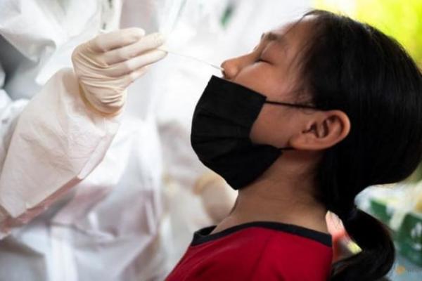 Seorang petugas kesehatan dari organisasi Zendai dalam alat pelindung diri (APD) mengambil sampel swab dari seorang gadis untuk tes antigen cepat di tengah wabah penyakit coronavirus (COVID-19), di Bangkok, Thailand, 5 Januari 2022 (Foto: REUTERS/Athit Perawongmetha)