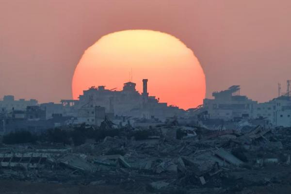 Matahari terbenam di atas Gaza, dilihat dari sisi perbatasan Israel antara Gaza dan Israel. REUTERS