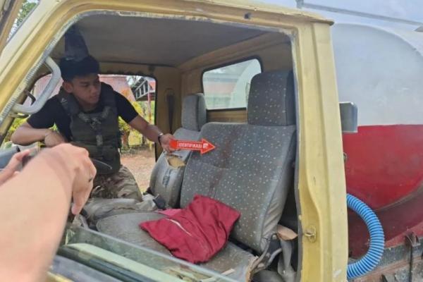 Anggota Satgas ODC melakukan pemeriksaan truk tangki air bersih yang ditembak oleh OTK di Kabupaten Yahukimo (Foto: Satgas Damai Cartenz)