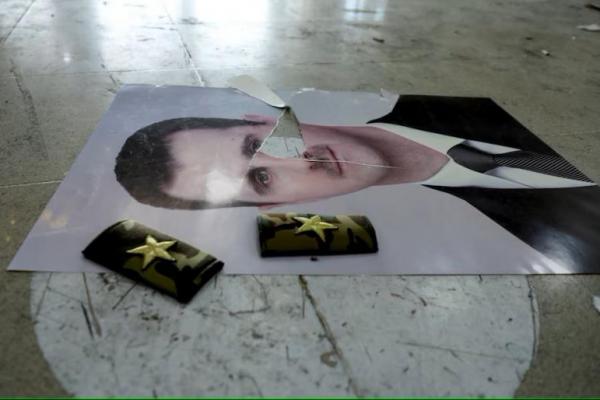 Gambar Bashar al-Assad Suriah yang rusak tergeletak di lantai di dalam bandara internasional Qamishli, Suriah (Foto: REUTERS)