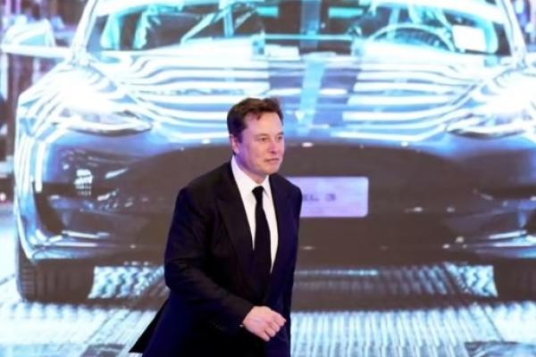 CEO Tesla Inc Elon Musk berjalan di samping layar yang memperlihatkan gambar mobil Tesla Model 3 saat upacara pembukaan program Model Y buatan Tesla China di Shanghai, China 7 Januari 2020. REUTERS/Aly Song/File Foto