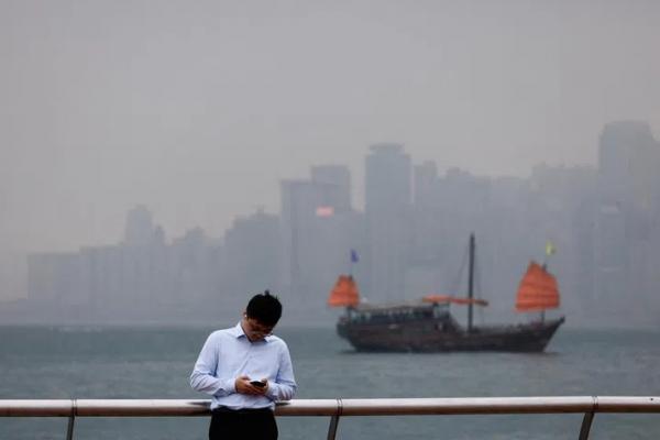 Seorang pria mengecek ponsel di Hong Kong (Foto: Reuters)