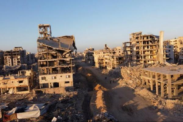 Pemandangan drone menunjukkan kerusakan di permukiman, setelah penarikan pasukan Israel dari daerah tersebut, di Kota Gaza. REUTERS
