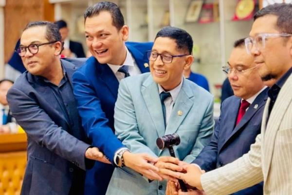 Wakil Ketua DPR RI, Sufmi Dasco Ahmad saat menyerahkan palu pimpinan ke Ketua Baleg DPR Bob Hasan beserta empat wakilnya di Kompleks Parlemen, Senayan, Jakarta, Selasa (22/10). (Foto: Instagram Mas Iman Sukri)