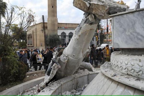 Patung mantan Presiden Hafez al-Assad dirubuhkan, Qamishli, Suriah 8 Desember 2024. REUTERS