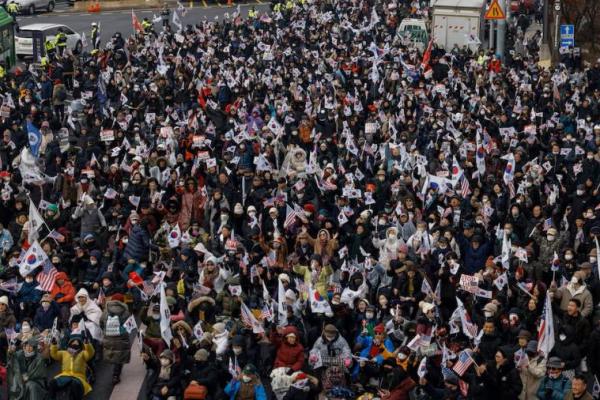 Sekelompok pemuda berada di antara kerumunan sekitar 100 pendukung yang begadang sepanjang malam di dekat kediaman Yoon pada hari Jumat, bersumpah untuk menghalangi penyelidik Korea Selatan yang mencoba melaksanakan surat perintah untuk menangkap presiden yang dimakzulkan tersebut.