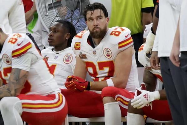 Travis Kelce tampak kecewa setelah Kansas City Chiefs kalah dari Philadelphia Eagles di Super Bowl 2025, Minggu (9/2/2025). (FOTO: FOX)