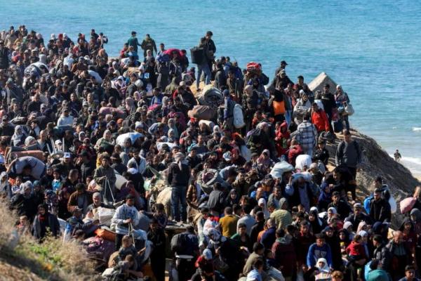 Warga Palestina, yang mengungsi ke selatan atas perintah Israel selama perang, kembali ke rumah mereka di Gaza utara, 27 Januari 2025. REUTERS