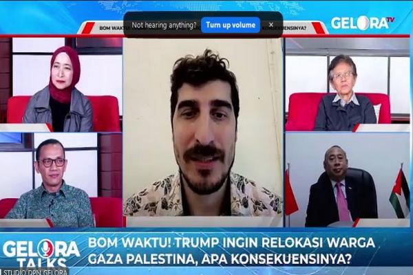 Gelora Talks bertajuk Bom Waktu! Trump Ingin Relokasi Warga Gaza Palestina, Apa Konsekuensinya? Rabu (12/2/2025). Foto: tangkapanlayar