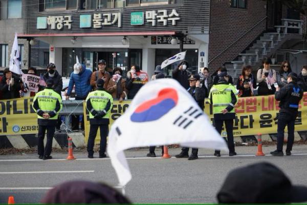 Selama sidang pengadilan sejauh ini, barisan polisi dan kendaraan telah mengepung pertemuan ribuan pendukung Yoon.