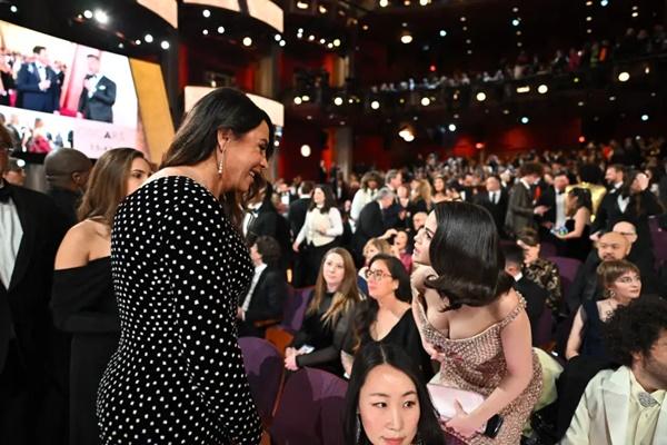 Karla Sofia Gascon bersama Selena Gomez di acara Oscar 2025, Minggu (2/3/2025). (FOTO: GETTY IMAGE)