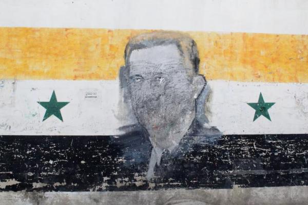 Dinding yang dicat dengan gambar Presiden Suriah yang digulingkan Bashar al-Assad yang rusak terlihat di lingkungan al-Qadam di Damaskus, Suriah, 26 Maret 2025. REUTERS