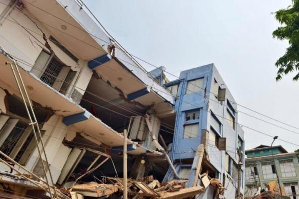 Ilustrasi bangunan terkena dampak gempa Myanmar. (Foto: Net)