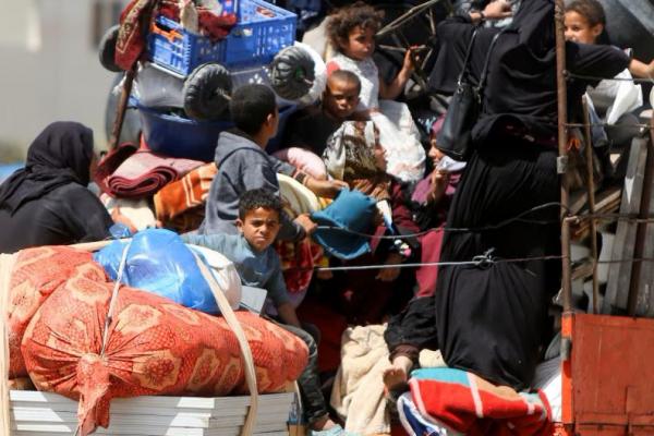 Warga Palestina mengungsi setelah meninggalkan daerah sekitar kota selatan Rafah, di Khan Younis di Jalur Gaza selatan, 31 Maret 2025. REUTERS
