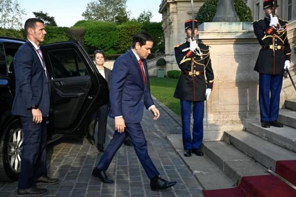 Menteri Luar Negeri AS Marco Rubio tiba di Kementerian Luar Negeri Prancis, di Paris, 17 April 2025. JULIEN DE ROSA via REUTERS