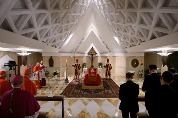 Vatikan mengatakan pada Senin malam bahwa staf dan pejabat di dalam Takhta Suci dapat segera mulai memberikan penghormatan terakhir mereka di hadapan jenazah paus di kediaman Santa Marta, tempat Fransiskus mendirikan rumah pada tahun 2013, menjauhi tempat yang agung dan apostolik istana tempat para pendahulunya tinggal.