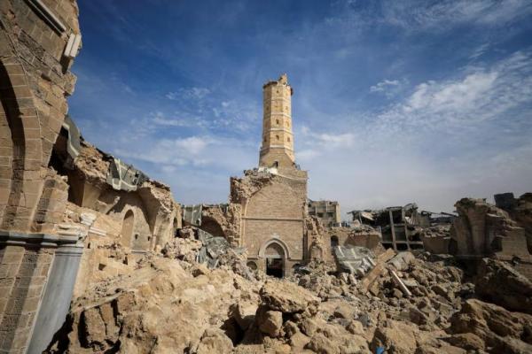 Menara Masjid Agung Omari, yang terkena serangan Israel sebelumnya selama perang, tampak rusak di Kota Gaza, 17 Maret 2025. REUTERS