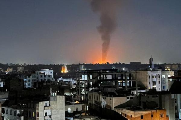 Asap mengepul di langit menyusul serangan udara pimpinan AS di Sanaa, Yaman, 25 Februari 2024. REUTERS