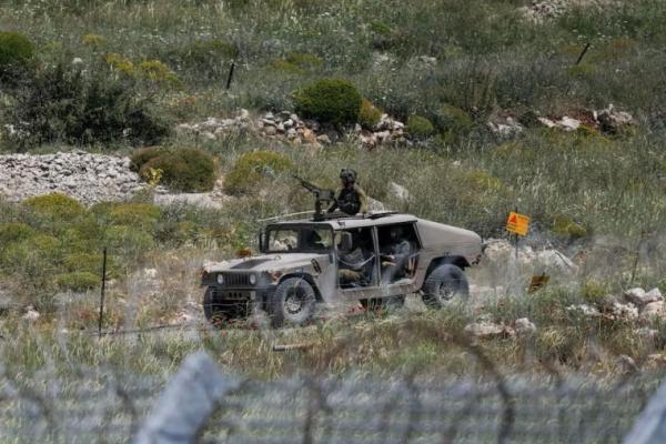 Sebuah kendaraan militer Israel terlihat di dekat perbatasan antara Dataran Tinggi Golan yang diduduki Israel dan Suriah, 4 Mei 2025. REUTERS