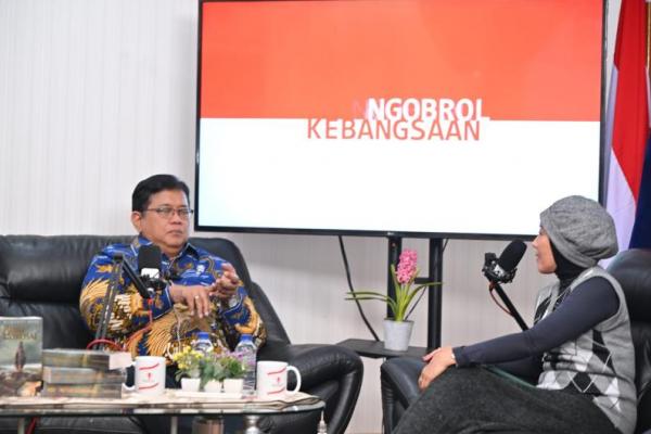 Wakil Menteri Transmigrasi (Wamentrans) Viva Yoga Mualadi saat menjadi tamu dalam Ngobrol Kebangsaan WRPodcast yang dipandu oleh Wahyuni Refi Setyabekti, di Jakarta (Foto: Kementrans)