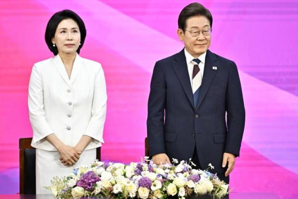 Presiden Korea Selatan Lee Jae-myung dan istrinya Kim Hye-kyung tiba untuk upacara pelantikannya di Majelis Nasional di Seoul pada tanggal 4 Juni 2025. Foto via REUTERS