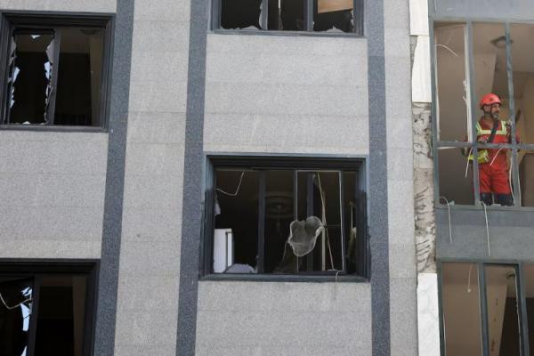 Seorang penyelamat melihat keluar dari gedung yang rusak setelah serangan Israel, di Teheran, Iran, 13 Juni. WANA via Reuters