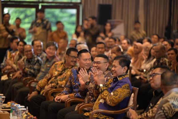 Wakil Menteri Transmigrasi Viva Yoga Mauladi menghadiri peluncuran Trans Tuntas sekaligus Penyerahan SHM kepada seratus kepala keluarga transmigran asal Kabupaten Sukabumi, yang digelar di Balai Makarti, Komplek Kantor Kementrans, Kalibata, Jakarta, Rabu (Foto: Kementrans)