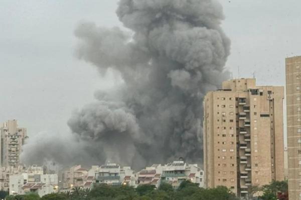 Media Israel melaporkan bahwa sebuah gedung berlantai tujuh terkena hantaman langsung, menyebabkan kerusakan besar di sekitarnya.