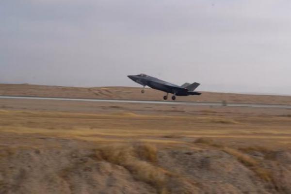 Jet tempur Angkatan Udara Israel F-35 Lightning Adir mendarat di lokasi yang disebutkan sebagai Pangkalan Udara Nevatim di Israel, yang dirilis pada 14 April 2024 via REUTERS.
