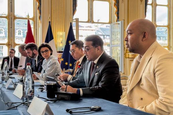 Menekraf, Teuku Riefky Harsya, bersama Menteri Kebudayaan, Fadli Zon, memenuhi undangan Menteri Kebudayaan Perancis, Rachida Dati, dalam forum Strategic Cultural Dialogue di Paris.