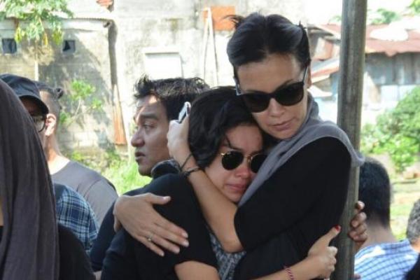 Mantan istri Indra Lesmana, Sophia Latjuba dan anaknya, Eva saat dipemakaman ibunda Indra Lesmana