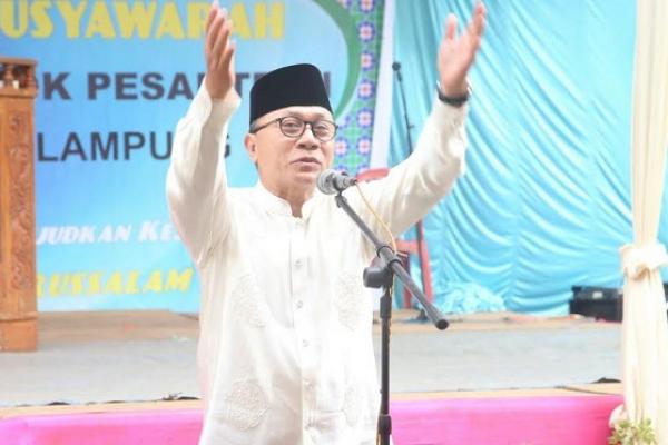 Untuk itu, Zulkifli menyampaikan pentingnya menjaga persatuan dan kesatuan seluruh umat Islam. Sebab, persatuan dan kesatuan seluruh umat menjadi bagian penting untuk mempertahankan sumber daya alam di Indonesia."Ketika umat Islam ribut sendiri untuk masalah yang sebenarnya tidak prinsip, tiba-tiba kita baru sadar kehilangan sumber daya alam," kata Zulkifli, saat menghadiri Silaturrahmi Ikatan Keluarga Pondok Pesantren Darussalam, di Natar Lampung Selatan, Minggu (9/7).Ia berharap, peran Pondok Pesantren bisa mempersatukan umat Islam di tanah air. "Sejarah buktikan Pondok Pesantren berjuang merebut kemerdekaan dari penjajah. Sekarang waktunya berjuang dengan mempersatukan umat," katanya. Ia menegaskan, sudah bukan waktunya untuk ribut dan berdebat soal Qunut atau tidak Qunut, Lihat Bulan atau Hitung, celana cingkrang atau tidak dan sebagainya"Kita seharusnya sudah bicara bagaimana agar Pendidikan Islam bisa maju. Atau bagaimana Ummat Islam bisa menguasai Ilmu Pengetahuan dan Teknologi. Jangan mundur ke belakang," tuturnya.Kepada pengelola dan pengajar Pondok Pesantren Darussalam, Zulkifli berpesan untuk terus berbenah meningkatkan kualitas sistem pendidikan "Semoga dari Pesantren Darussalam lahir calon calon pemimpin bangsa yang menguasai Ilmu Pengetahuan dan Teknologi. Siapapun walaupun dari desa, bisa jadi apapun asal mau kerja keras," tutupnya.
