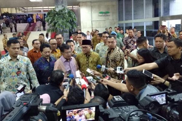 Wakil Presiden Jusuf Kalla dan Ketua MPR Zulkiflli Hasan usai acara Simposium Nasional MPR