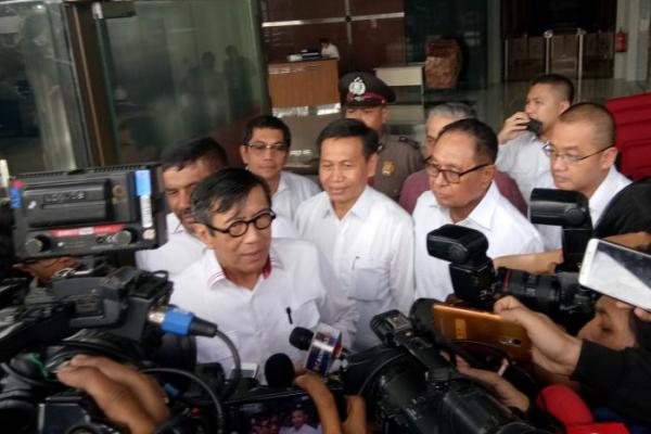 Menkumham Yasonna Laoly usai diperiksa sebagai saksi dalam kasus korupsi pengadaan e-KTP, di gedung KPK, Senin (03/06/2017)