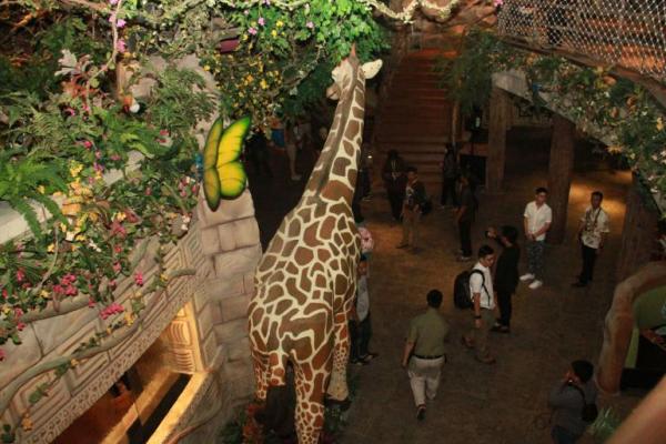 Desain sebuah cafe Madagaskar seperti di hutan dengan dipadati hewan replika ( foto jurnas.news-Munadi)