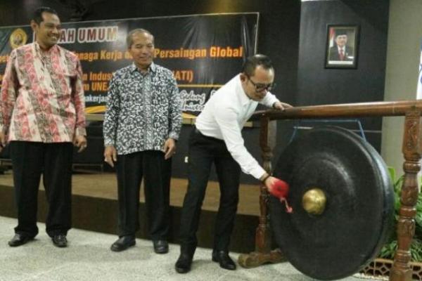 Menaker memukul gong meresmikan