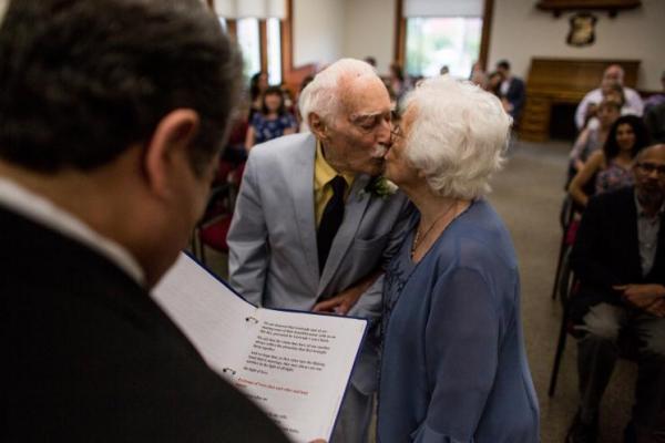 Jakarta - Usia bukan pantangan untuk tidak lagi romantis. Bahkan pada usia tua pun, berkencan dan menikah bukan jadi halangan. Itulah yang terjadi dengan kakek dan nenek bernama Gertrude Mokotoff dan Alvin Mann.